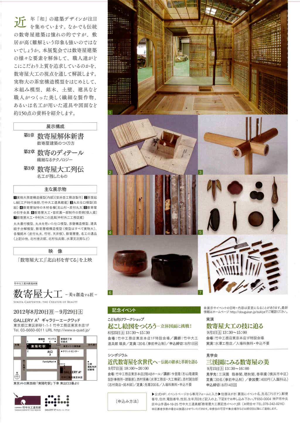 「数寄屋大工-美を創造する匠-」と題した展示が、東陽町駅の竹中工務店東京本店で開催されます。